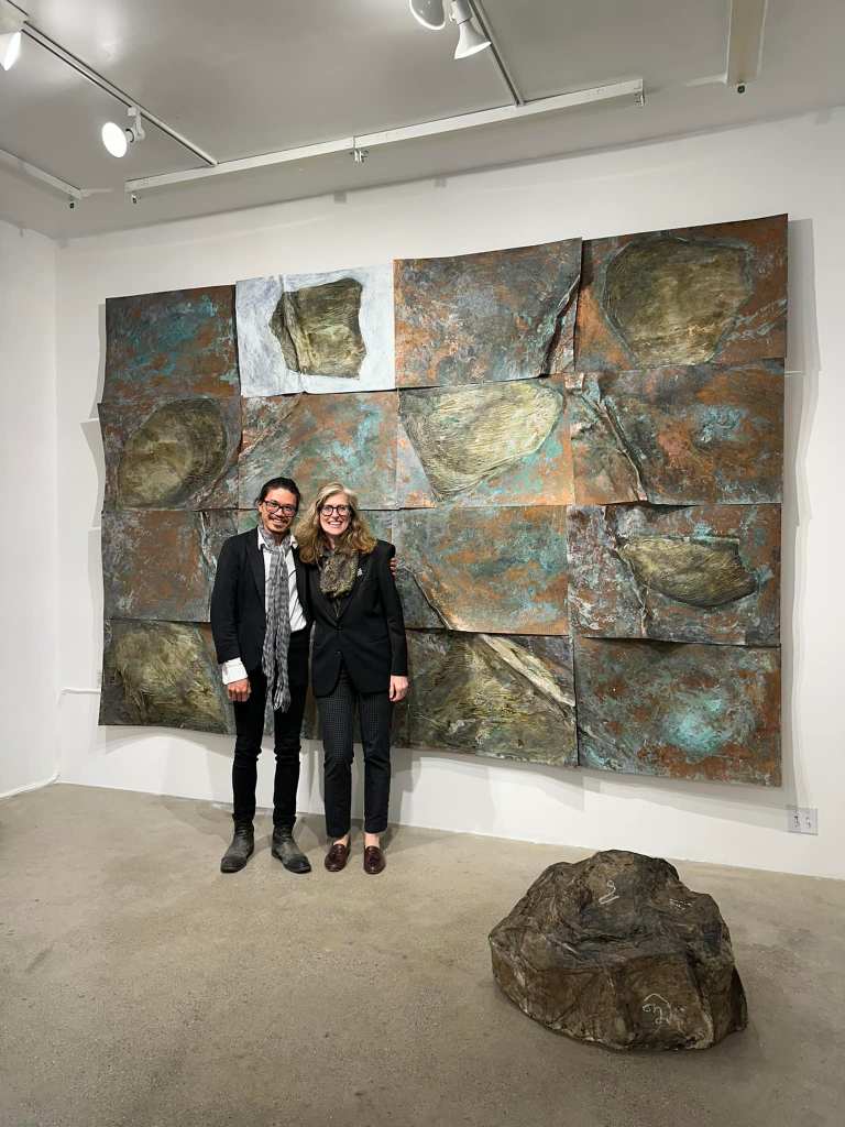 Among the many high points of the recent Samuel Beckett Society conference Beckett & Justice at Cal State LA was the engagement with Thai artist Saun Santipreecha whose current exhibition …These Things That Divide The World In Two…. at REISIG AND TAYLOR CONTEMPORARY. The show is a response by the artist to his reading of and interaction with Beckett over the years. A highlight of the conference was a public interview with Santipreecha conducted by Feargal Whelan and Katherine Weiss followed by a site visit to the gallery for attendees where the artist guided all through the exhibit.