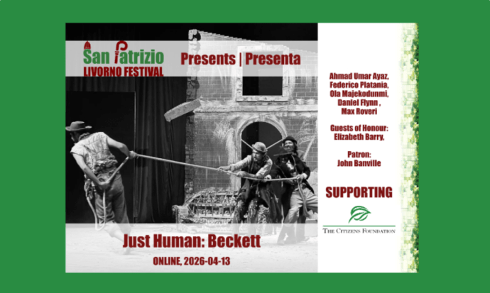 San Patrizio Livorno Festival And ItalishMagazine have just announced an online Beckett event which should be of interest to members. To coincide with the author’s birthday on 13 April they will present Just Human: Beckett which is described as ‘an online conversation celebrating the universal humanity in Beckett’s work, connecting Ireland, Italy, and Pakistan in…